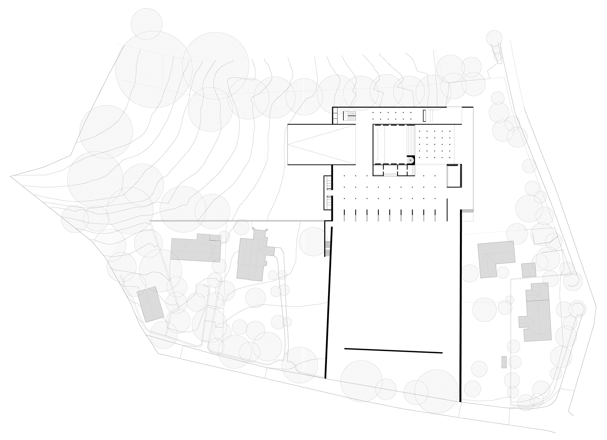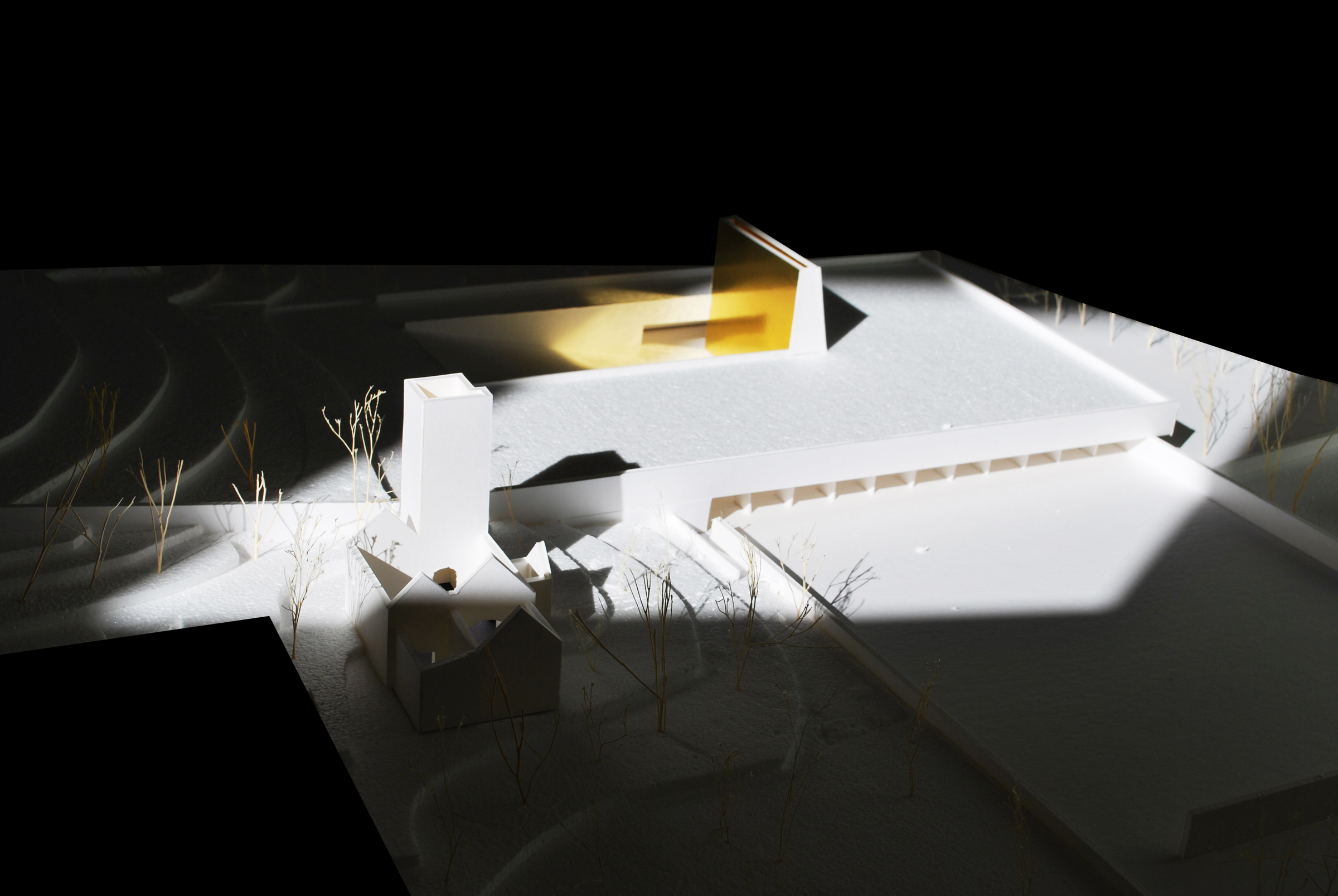L’implantation de ce corps est le résultat de la lecture du registre existant et la couverture se définie comme un prolongement de la topographie.