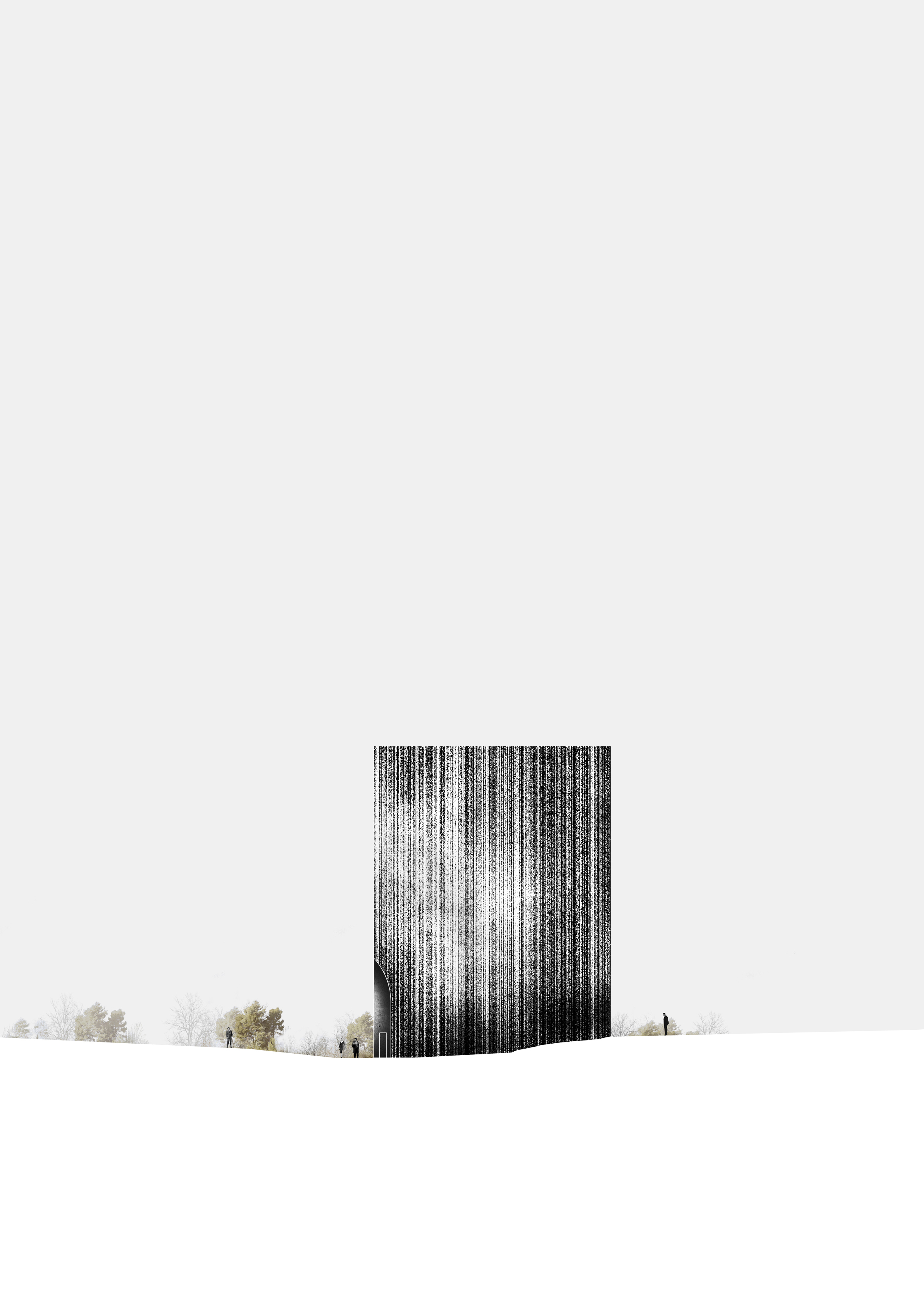 A volume of concrete which intends to be slender, stands near the quarry. Entry into the house is designed gradually and the landscape is revealed in this transition. Inside, the central spaces turn to a landscape in transformation; they are concave and draw light and sound. A convex surface on the outside defines the place of the audience.