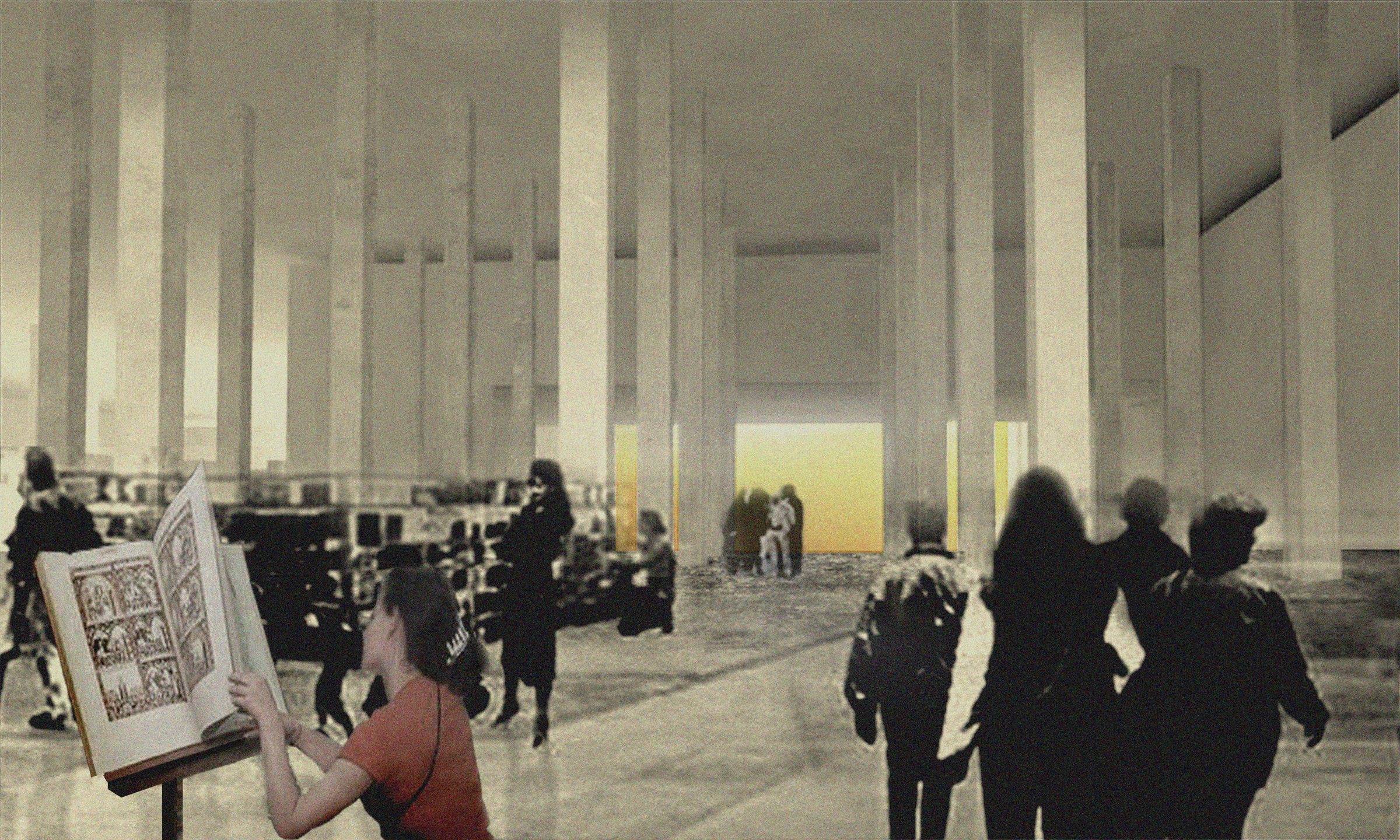 Fotomontagens do terreiro, centro de pesquisa e museu.